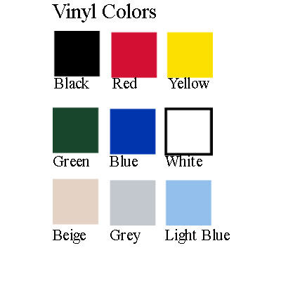 Product/Part Colors 1: Vinyl colors: Black, red, yellow, green, blue, white, beige, grey, light blue
