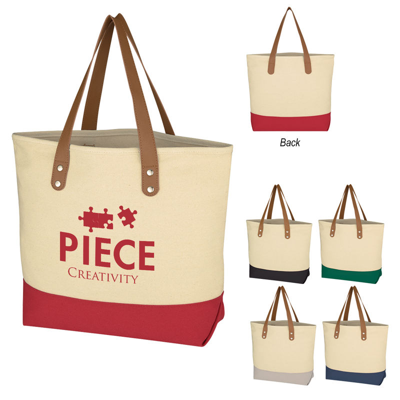 *NEW* 16" x 12" 12 Oz Cotton Tote Bag with Color Accent, 18" Leatherette Handles