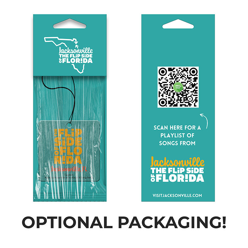 These stunning 2-sided full color air fresheners eliminate unpleasant odors wherever someone hangs them.