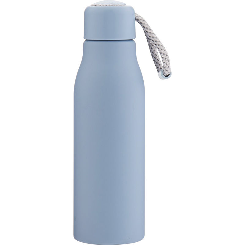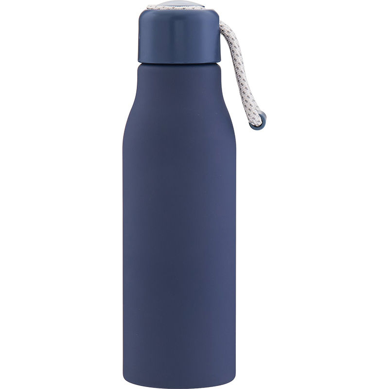 Made from single-wall aluminum, it features a threaded lid, a carrying cord with a pop of color, and a smooth matte finish—perfect for staying hydrated on the go with cold beverages.