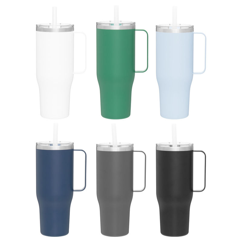 *NEW* 40 oz Vacuum Insulated Travel Mug with Powder-Coated Finish and METAL Handle Fits in Cup Holders - BETTER