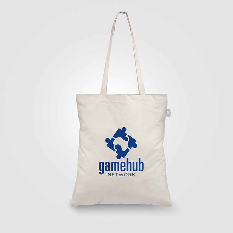 The bag is made with 5 oz. (140 gsm) Recycled Cotton Blend (contains 55% cotton + 45% polyester), making it perfect for Earth-conscious brands.