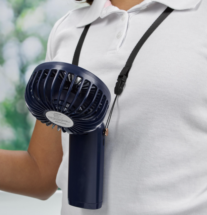 Use it as a handheld cooling device, or free up your hands by setting it on a flat surface or attaching the included lanyard for use around your neck.