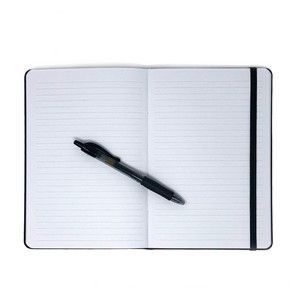 Full-color custom printed record label on cover, elastic strap closure, faux leather back cover.