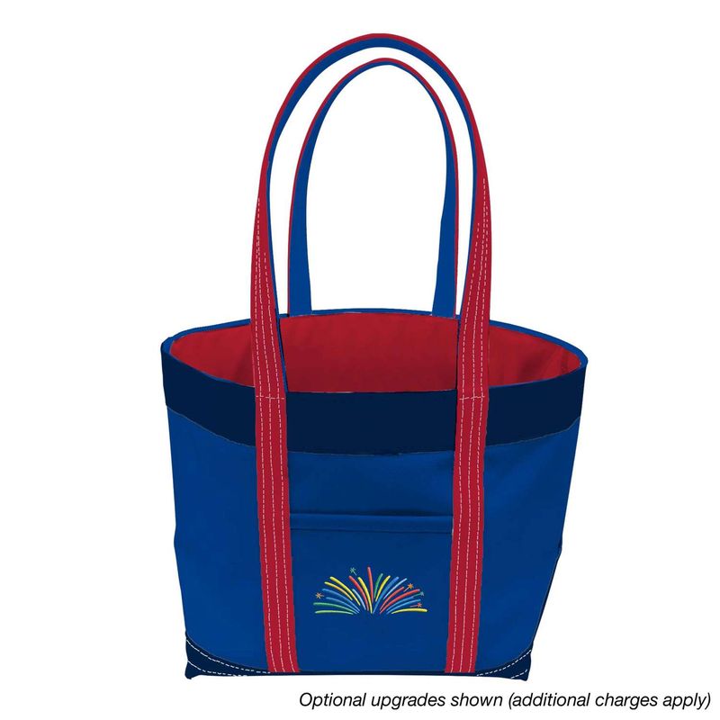 • Optional upgrades (additional charges apply): embroidery, custom printed lining, and custom imprinted edge band around bag opening