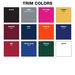 Product/Part Colors 1: Body Colors: black, camel 7504, charcoal cool grey 11, cool grey 8, maroon 7421, natural, navy 282, pink 1895, purple 2119, red 201, royal 7687, spruce 627, white, yellow 7409