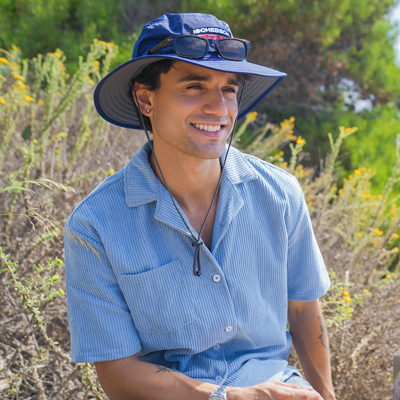 Designed for adventurers and nature lovers alike. 100% polyester with a wide brim and adjustable under-chin drawstring.