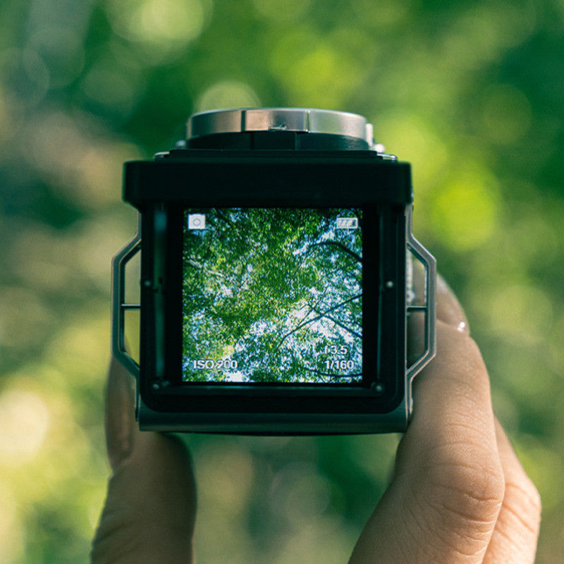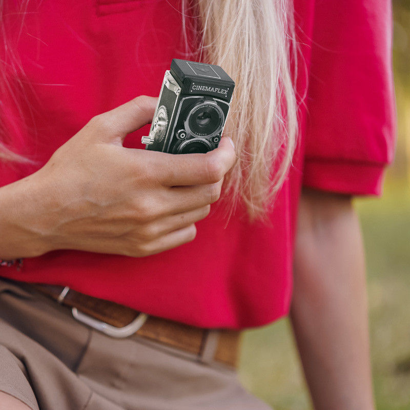 The classic vintage design replicates a miniature version of a TLR(Twin Lens Reflex) camera.