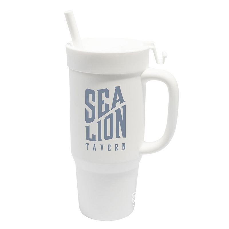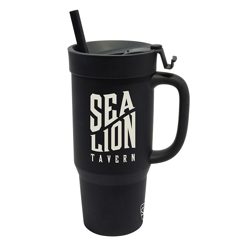 This 32 oz straw tumbler features a flip-top lid, matching straw and sturdy ergonomic handle, that is easy to grip, grab, and go.