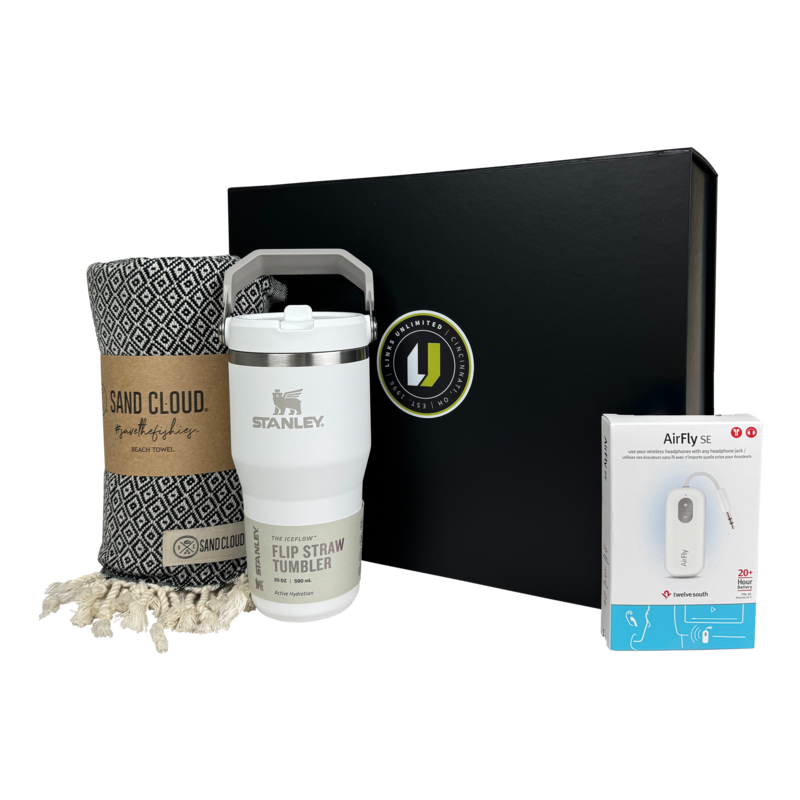 *NEW* The Great Escape! Gift Set with Stanley® Iceflow Tumbler, Sand Cloud® Beach Towel, and AirFly® Wireless-to-Wired Headphone Converter in a Presentation Gift Box