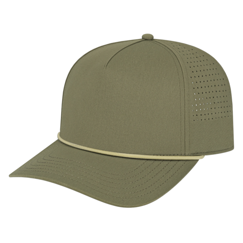 *NEW* The Perforated Performance Cap with Rope: Mid-Profile, SNAP-BACK, Modified Flat Visor, Poly Blend with Perforated Sides and Back and Rope Accent