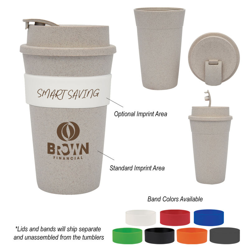 *NEW* Wheat Straw Plastic 16 oz Travel Tumbler with Silicone Grip