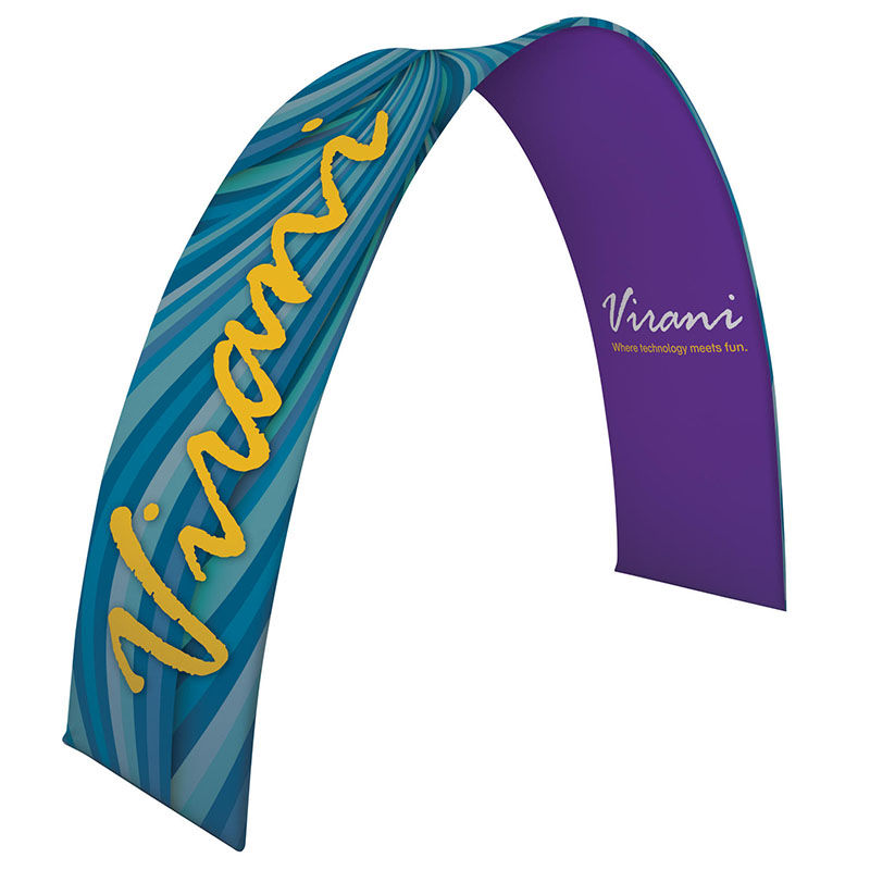 These eye catching overhead displays allow you to take full advantage of your booth area with brilliant dye sub graphics in front of and overhead of your booth.
