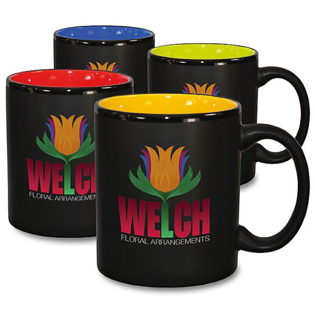 11 oz Black Coffee Mug with Color Interior and Full-Color Wraparound Imprint (No Bleed)- Low Minimums