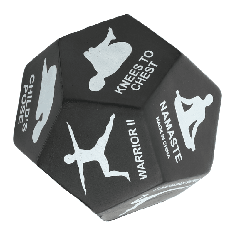 12 side yoga dice with different yoga poses to keep your workout new and exciting!