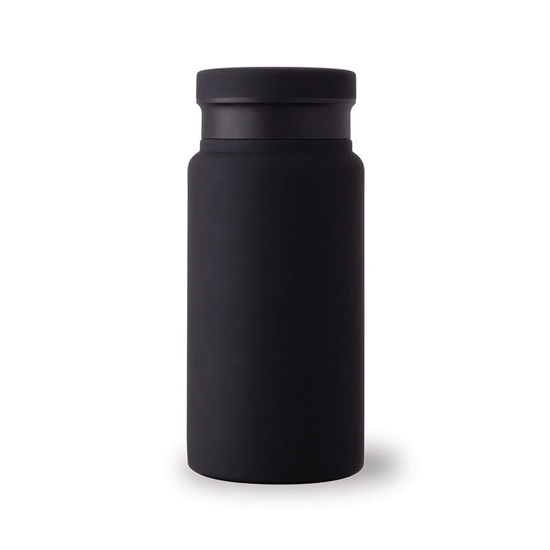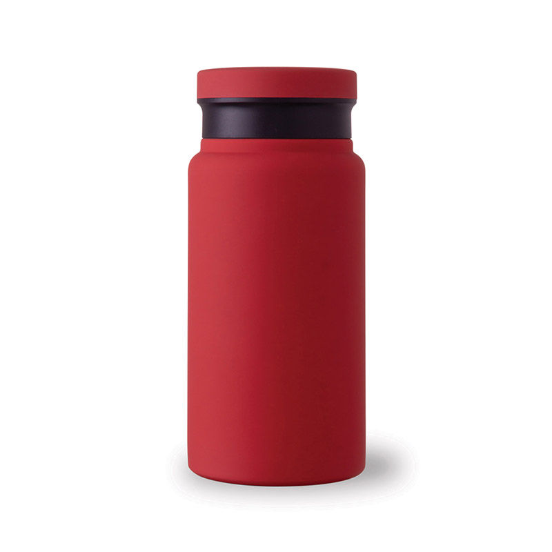 This silhouette offers a matte rubberized body with a color-matching leakproof threaded lid.