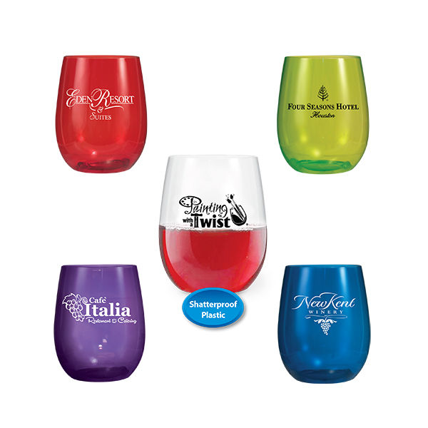 12 oz. Stemless PLASTIC Wine Glass