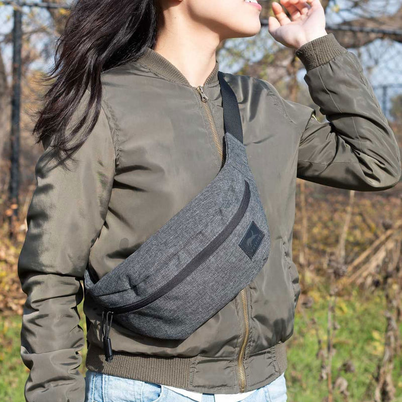 This functional fanny pack comes with a thick, adjustable waist strap that gives you freedom to wear it as you please.