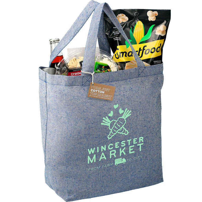 The 5oz Cotton Twill Recycled Grocery Tote will be your go-to tote on grocery day and helps promote social responsibility.
