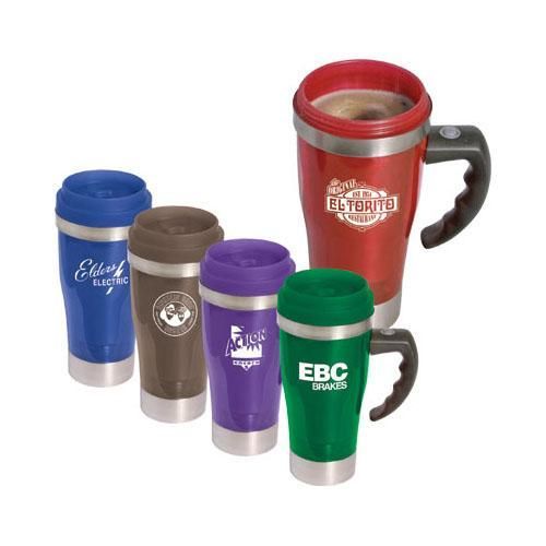 14 oz. Acrylic/ Stainless Steel "Stir" Mug Mixes Coffee, Soup or Hot Chocolate with the Press of a Button
