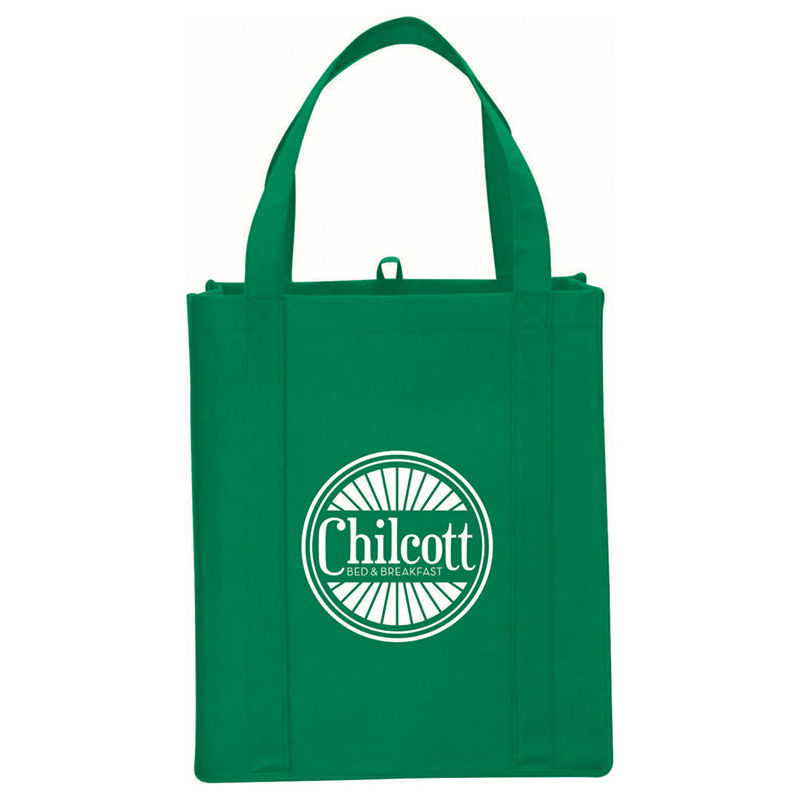 Our Big Grocery Tote features an open main compartment with a 10" gusset, supportive bottom board, and reinforced binding on edges.