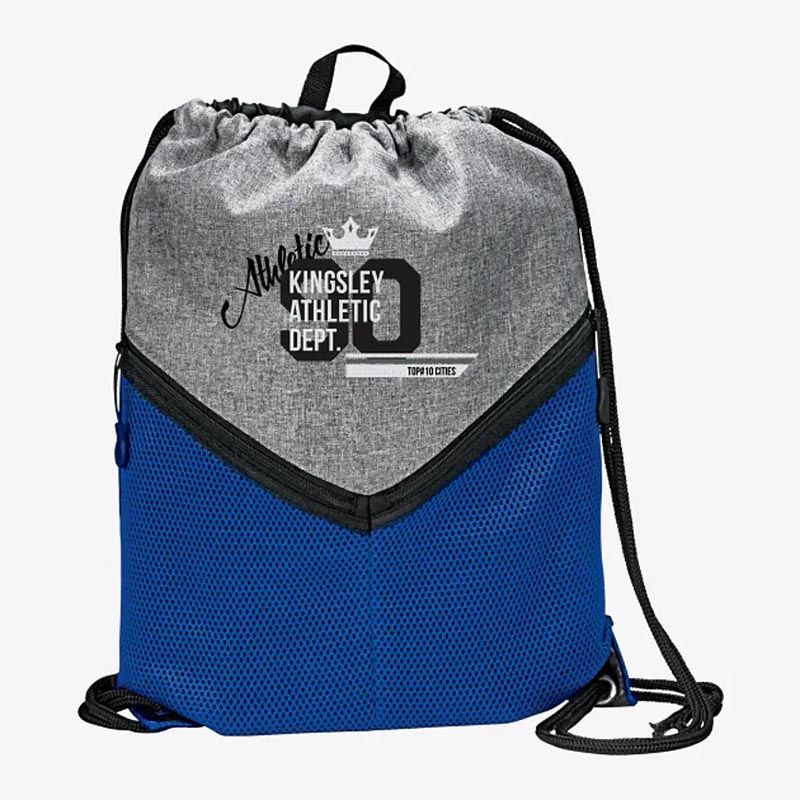 15" x 18" Polycanvas Drawstring Cinch Backpack with Two Zippered Air Mesh Pockets