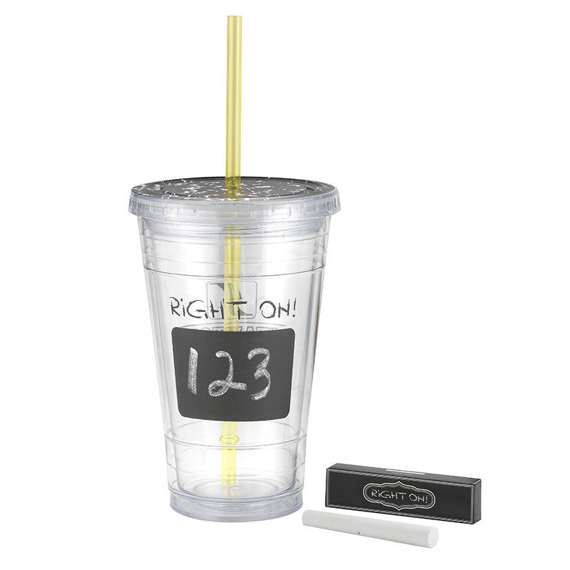 Our classic 16 oz. tumbler is now available in a Back To Shool edition: comes complete with Chalk ink (in any color) and its own box of chalk for writing a personal, easy to change message, plus a Fresco lid resembling the classic Marble Notebook.