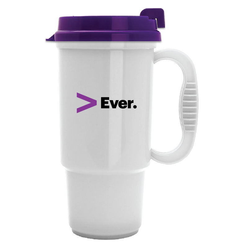 • Unique four-finger ergonomic handle; Double wall insulation keeps drinks hot; Fits into most auto cup holders