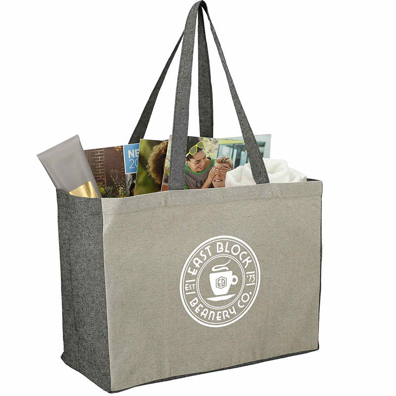 The Recycled Cotton Contrast Side Shopper Tote is made from eco-friendly, pre-consumer recycled cotton and features trendy color-contrasting sides.