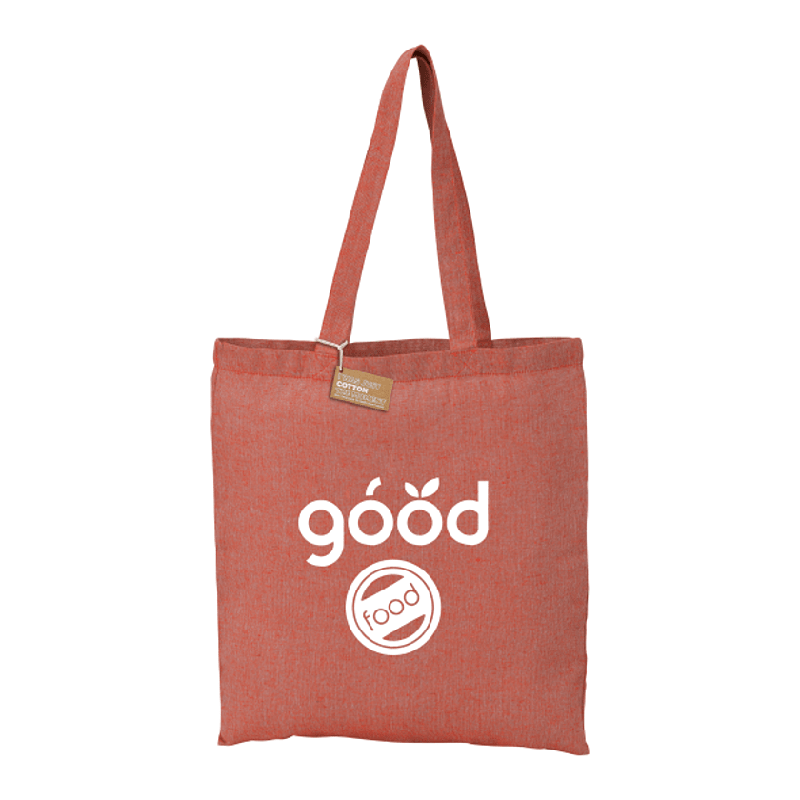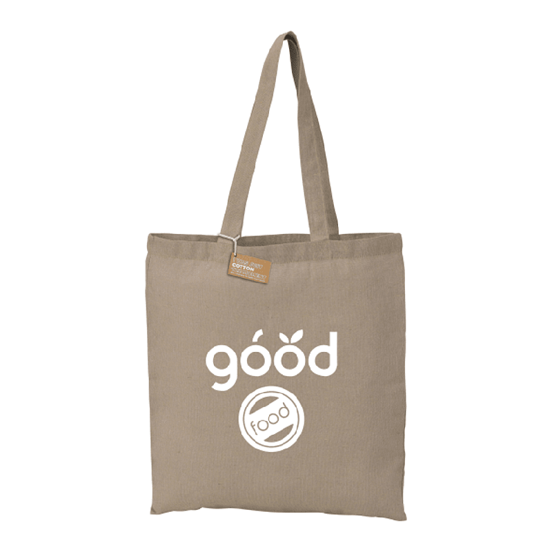 This recycled cotton twill tote is great for any convention and helps promote corporate social responsibility.