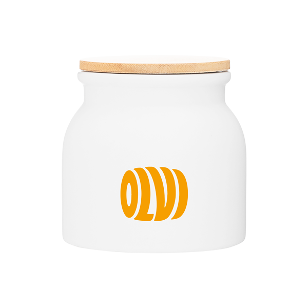 • Matte white out / glossy white in with push-on bamboo lid kitchenware