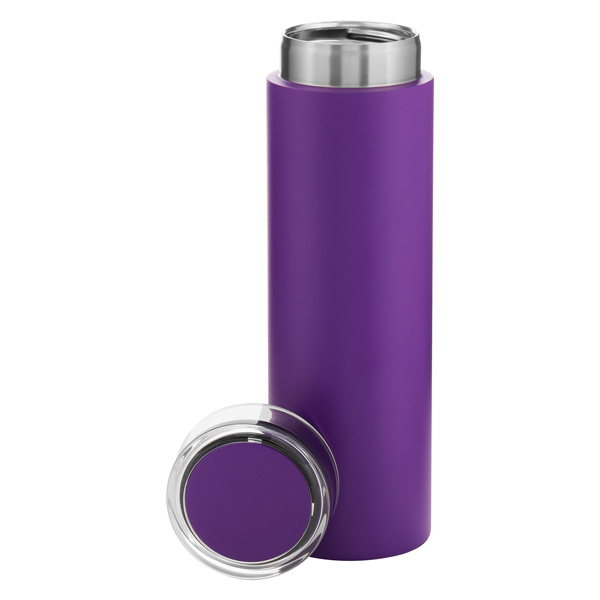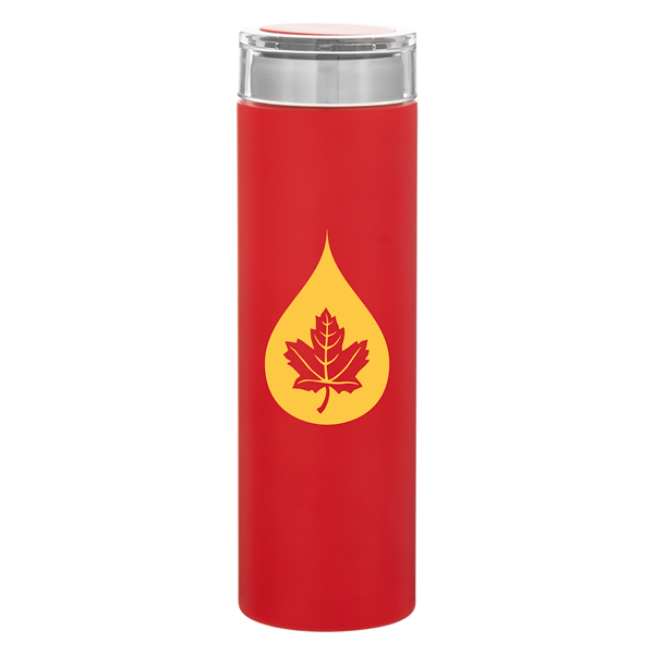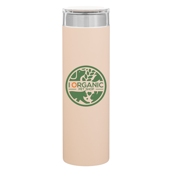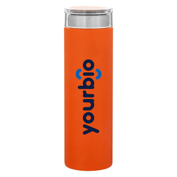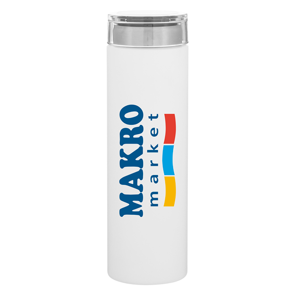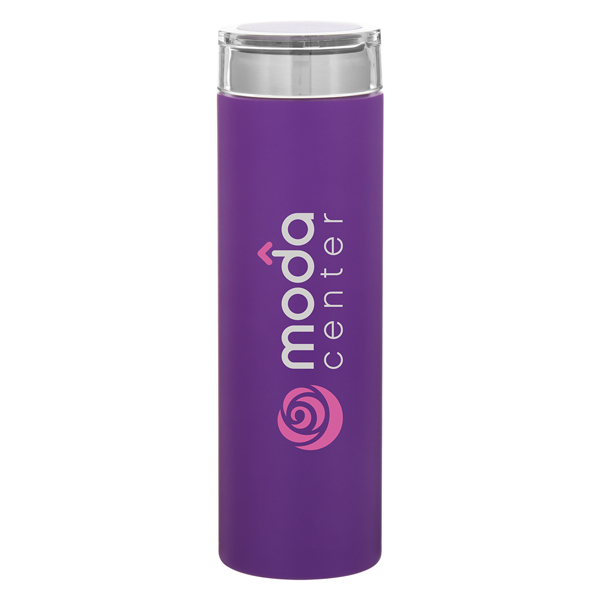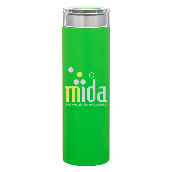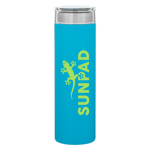 16.9 oz double wall 18/8 stainless steel thermal bottle with copper vacuum insulation, threaded Eastman Tritan lid, stainless steel matching top, and powder coated finish