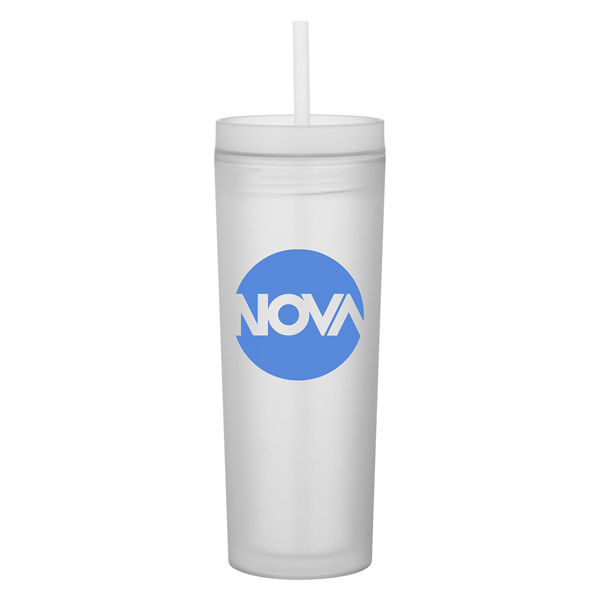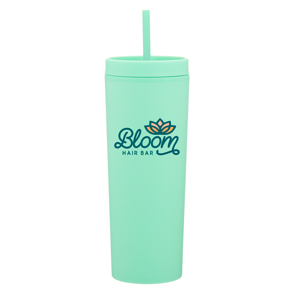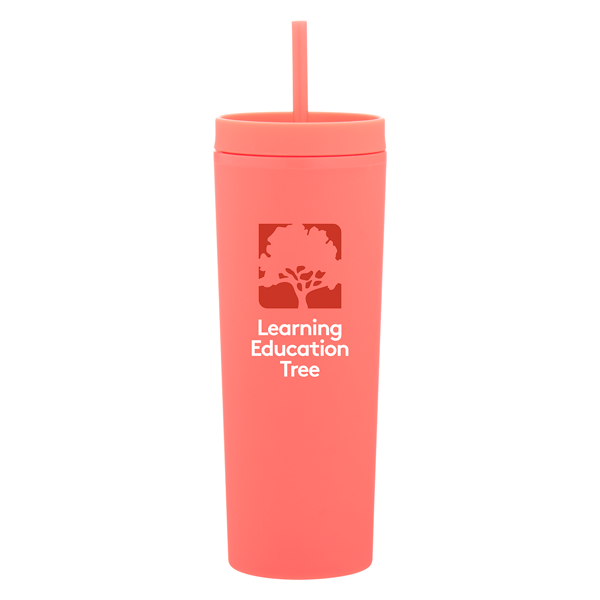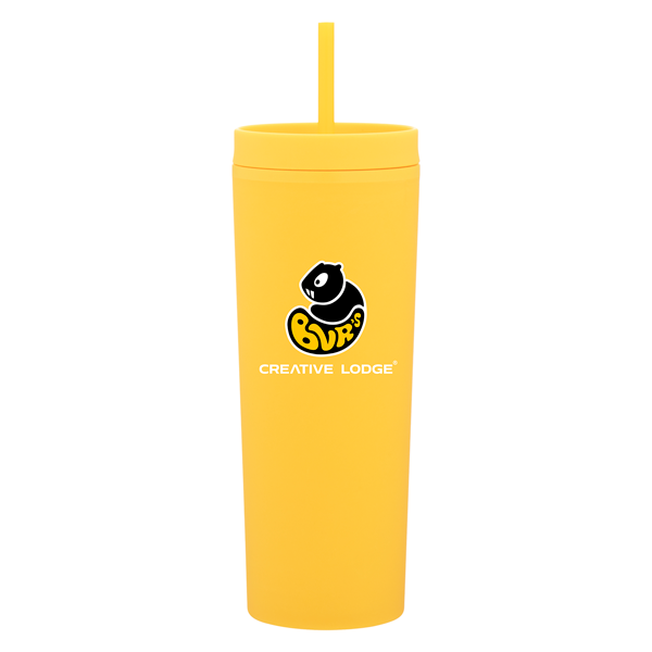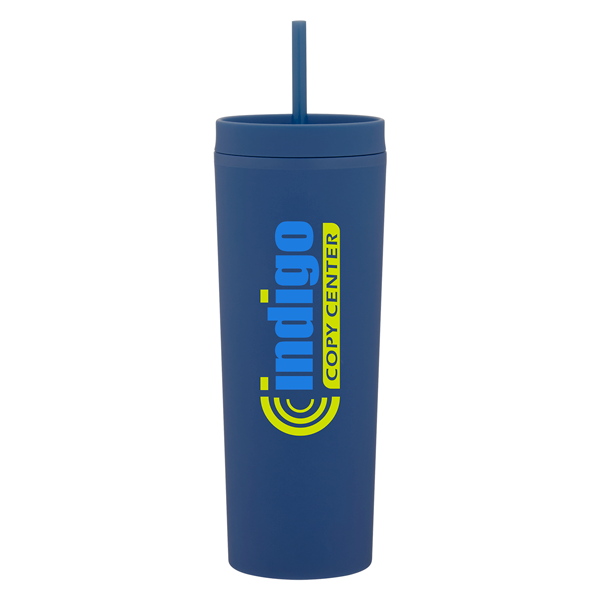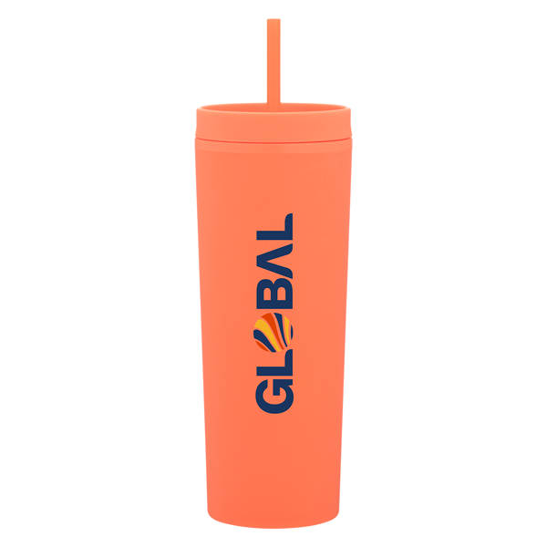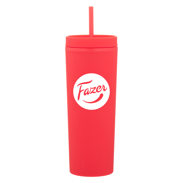 17 oz Double-Wall Acrylic Tumbler with Rubberized Finish and Matching Soft Straw