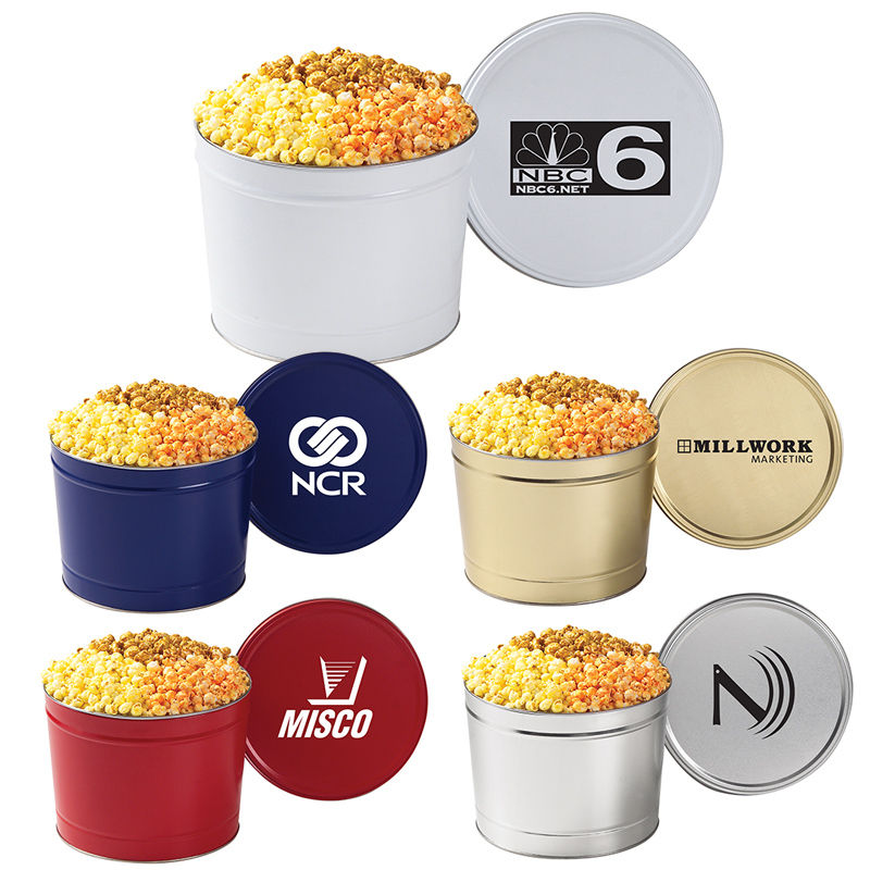 2 Gallon Classic Popcorn Tin - Classic Butter, Cheddar Cheese, and Caramel