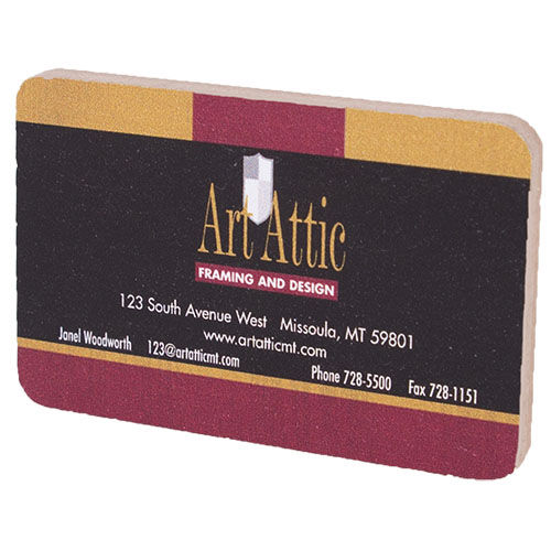 Featuring a stout 1/4" thick hardboard wood material with a full magnet back and full color graphics, this magnet really stands out!