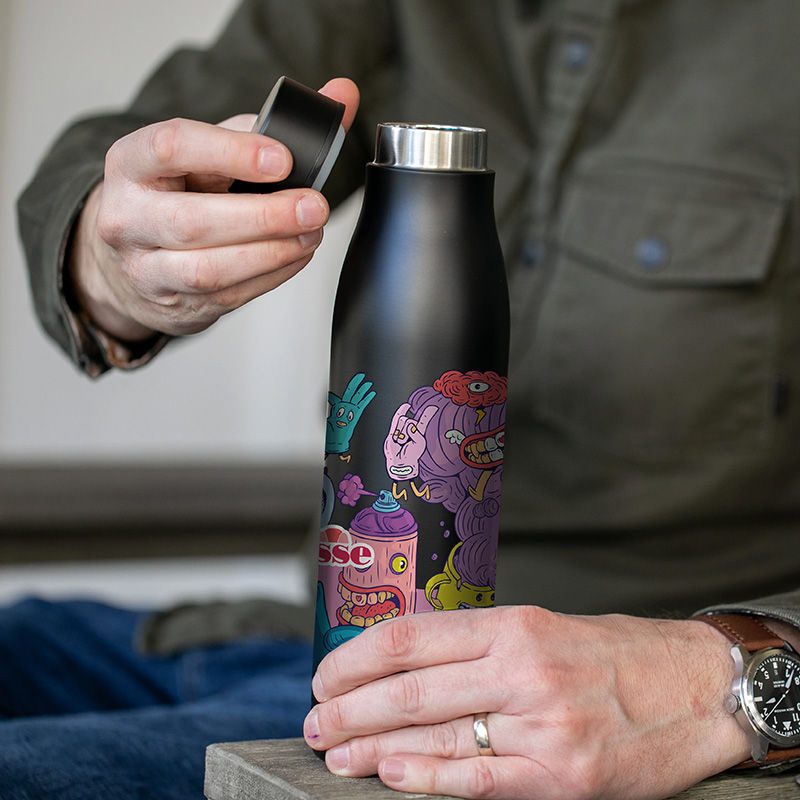 20 oz. Double Wall Stainless Steel Bottle , 84% Recycled, Is Carbon-Neutral, Second Life Packaging Transforms Into a Cord Organizer Reducing Landfill Waste - Low Minimums