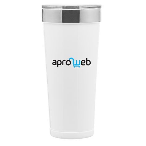 20.9 oz double wall 18/8 stainless steel thermal tumbler with copper vacuum insulation, high polish accent and push-on acrylic swivel lid.