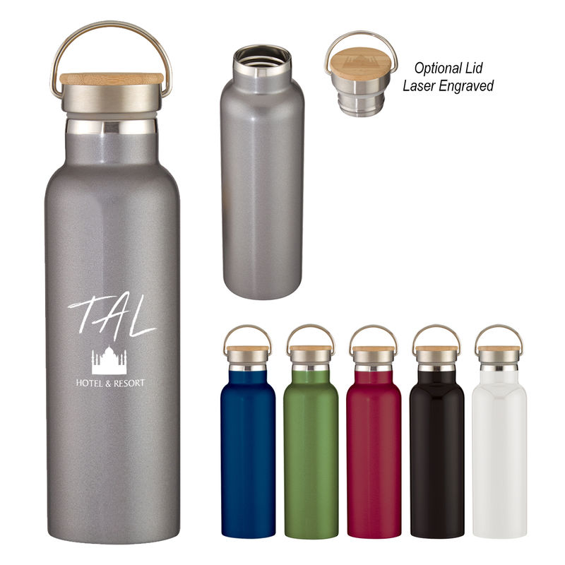 21 oz Stainless Steel Vacuum Bottle with Wood Lid