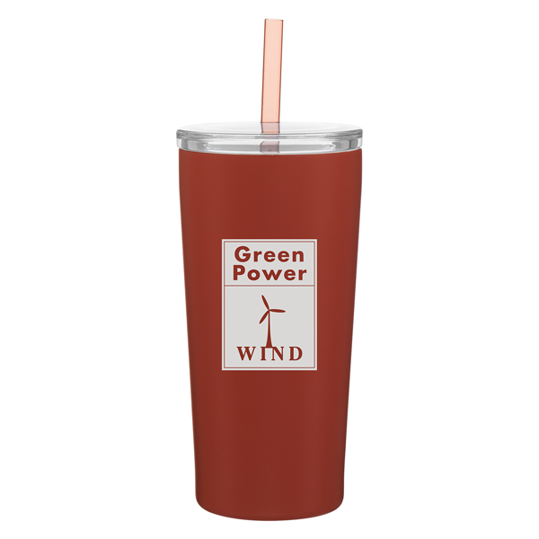 24 oz 90% post-consumer recycled stainless steel tumbler with copper vacuum insulation, Tritan Renew threaded lid, Tritan Renew tinted straw, and powder coated finish