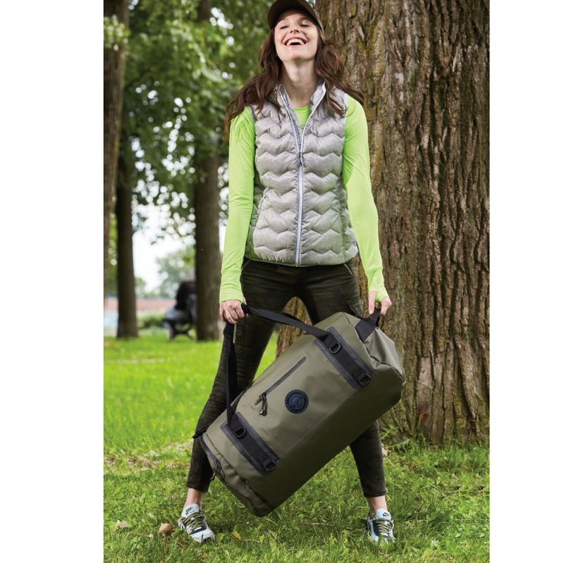 • This IPX3 level water resistant duffle ensures your belongings stay dry on your outdoor adventures.