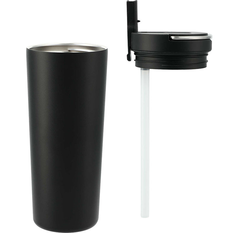 The construction also prevents condensation on the outside of the tumbler. On-trend, durable powder coating. Easy sipping, screw-on lid with pop-up straw.