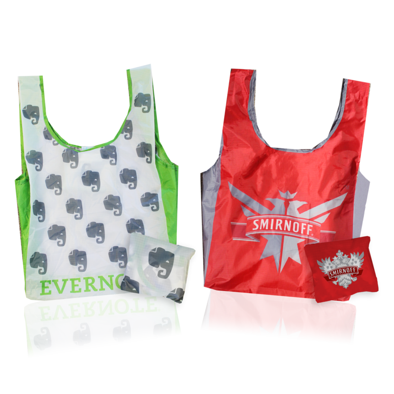 When not in use, easily fold your bag into a unique, full color, full bleed pouch that can fit with you almost anywhere.