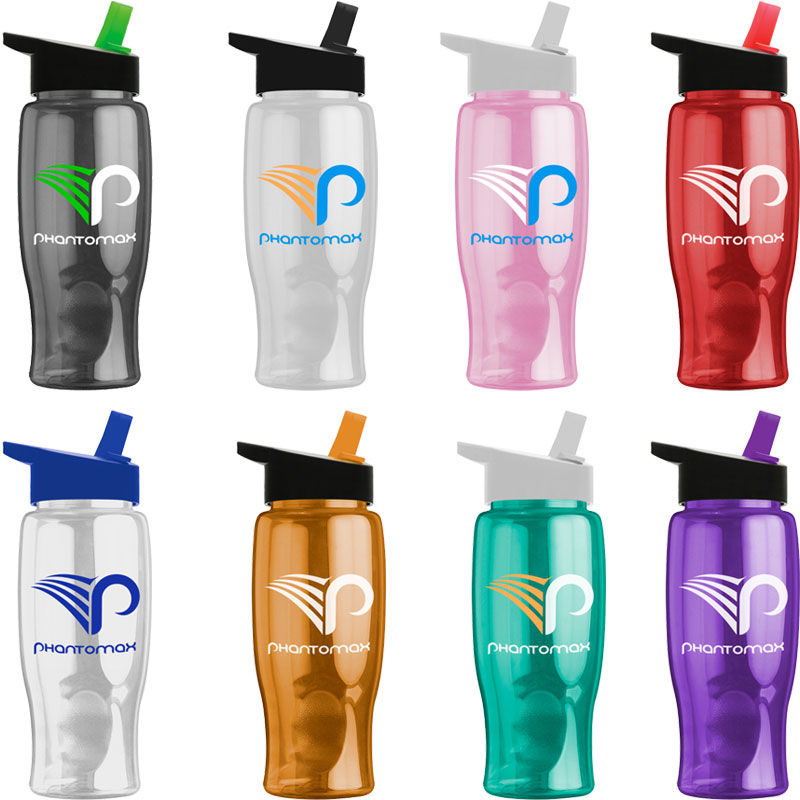 27 oz. Transparent Sports Bottle has a contoured, tapered base to fit auto cupholders.