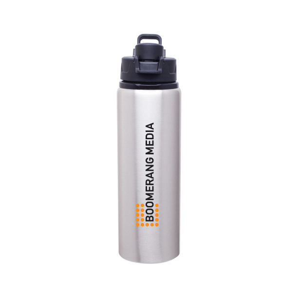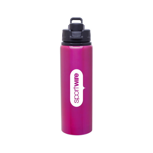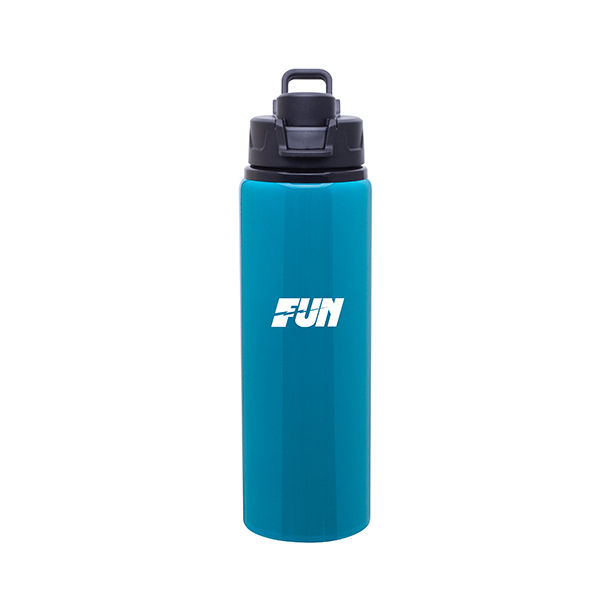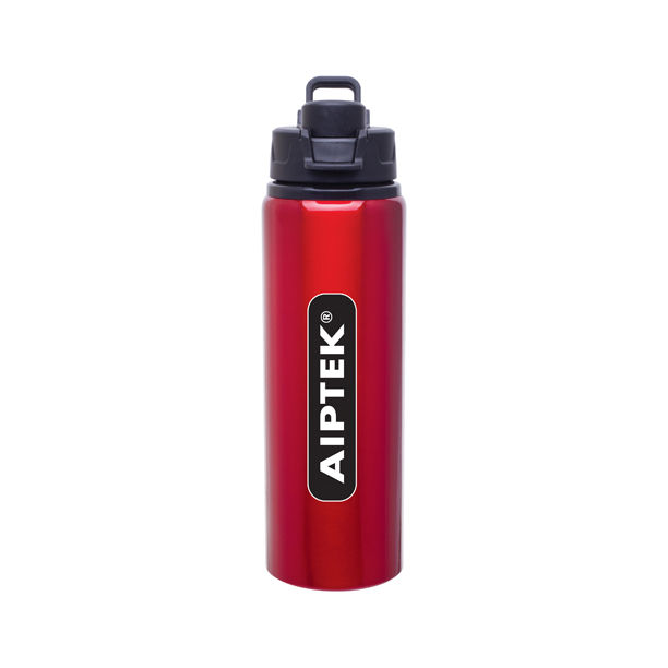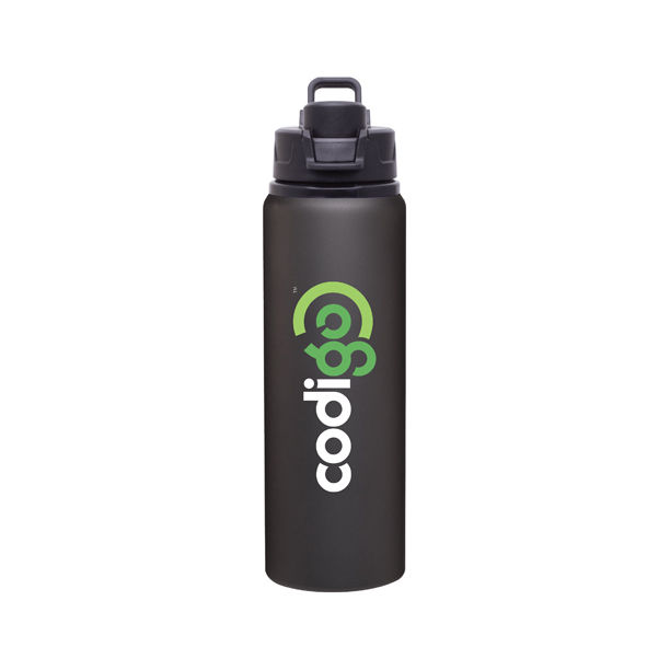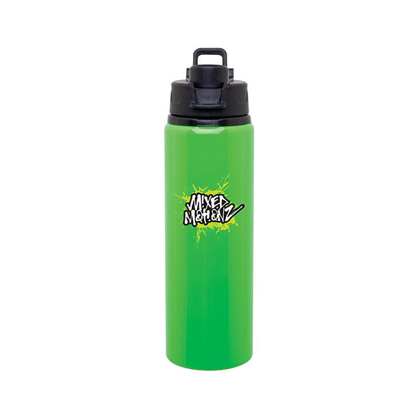 • 28 oz single wall aluminum water bottle with threaded flip-top lid