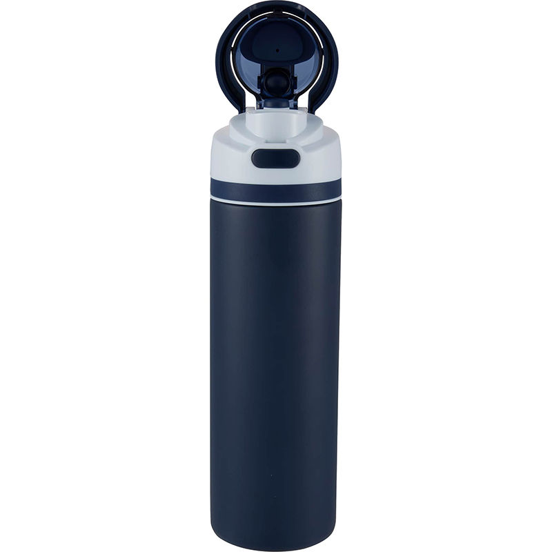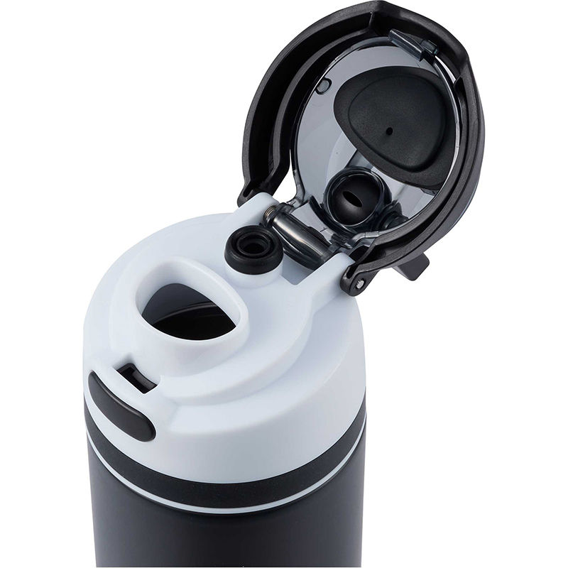Use the push button to pop the lid open and enter one-handed chug mode!