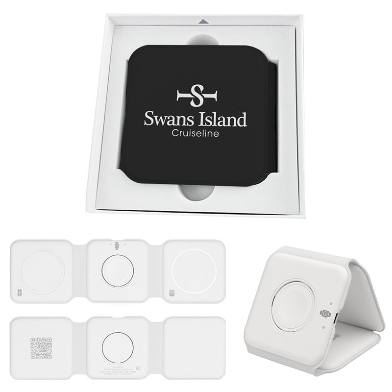 3-in-1 Folding Travel Charger Charges Phone, Earbuds, and a Smart Watch Simultaneously