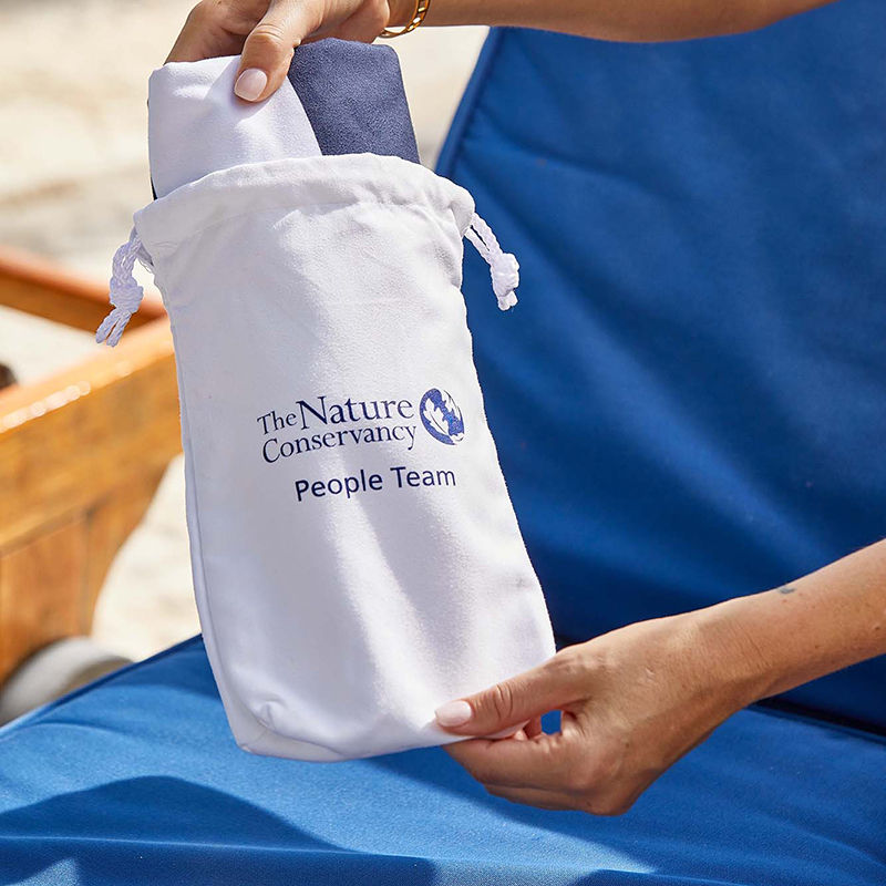 Pricing is per towel and includes a 1-color imprint on a towel and 1 color on the bag.