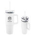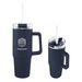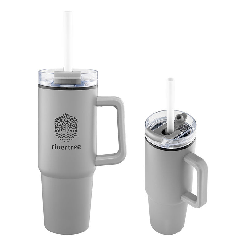 30 oz Stainless Steel Outer and PLASTIC Inner Liner Tumbler with Straw and Drink-Thru Lid with Matching Color PLASTIC Handle Fits in Cup Holders
