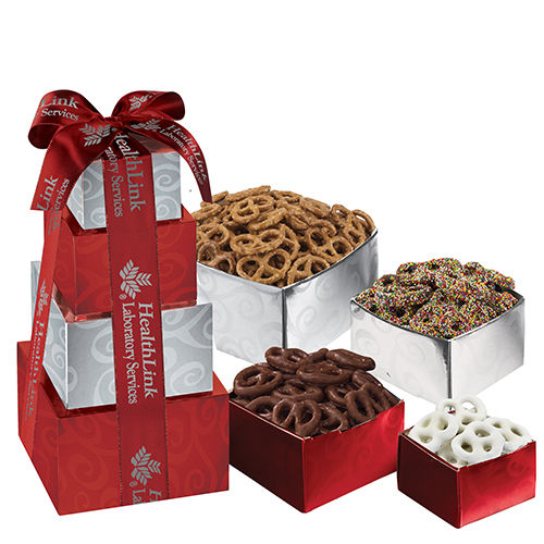 4-Tier Sweet & Salty Pretzels Gift Tower with 4 Best-Selling Flavors