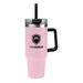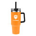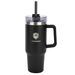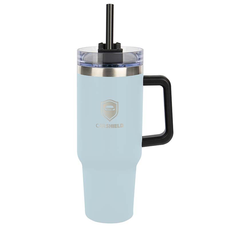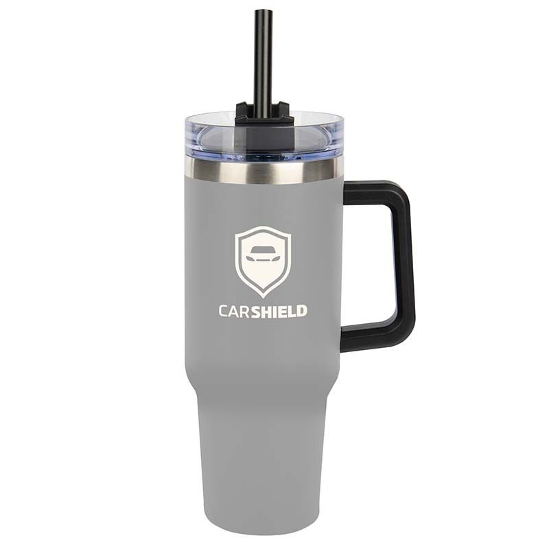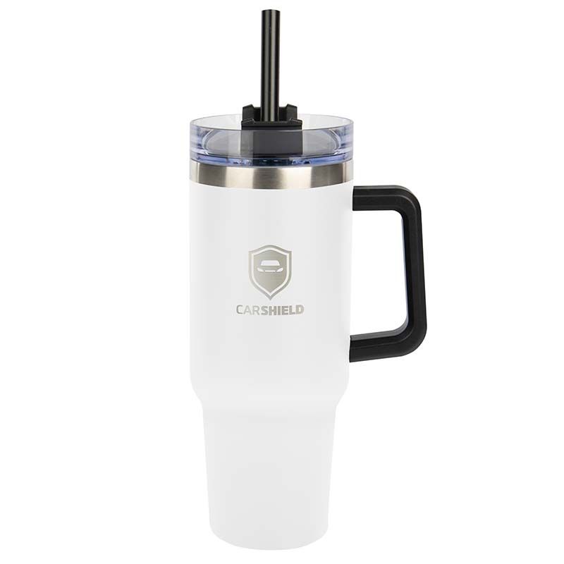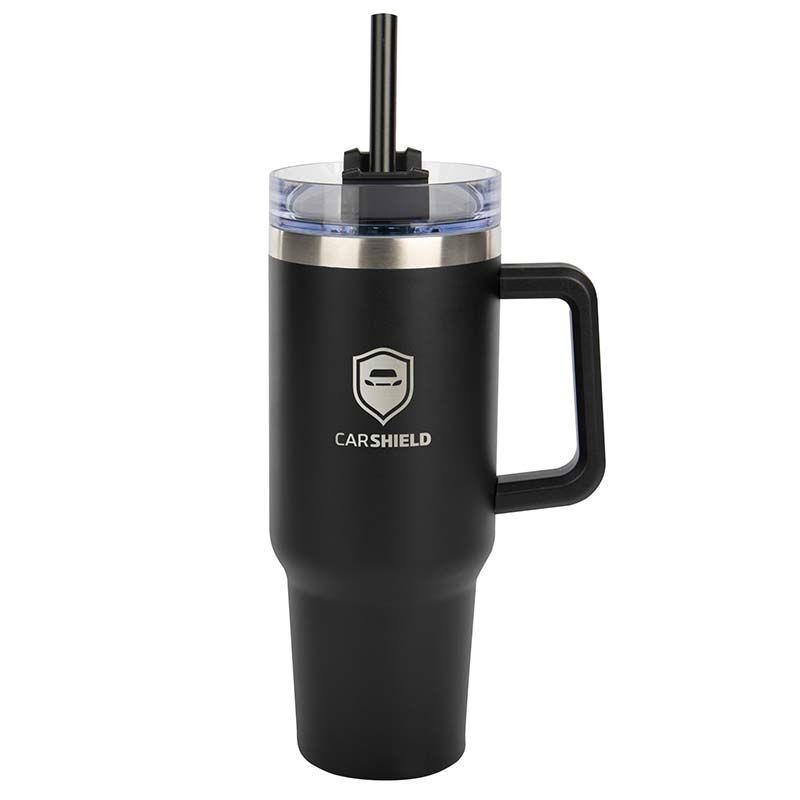 40 oz Stainless Steel Outer and Inner Vacuum-Insulated Tumbler with Straw and Drink-Thru Lid with Black PLASTIC Handle Fits in Cup Holders - GOOD